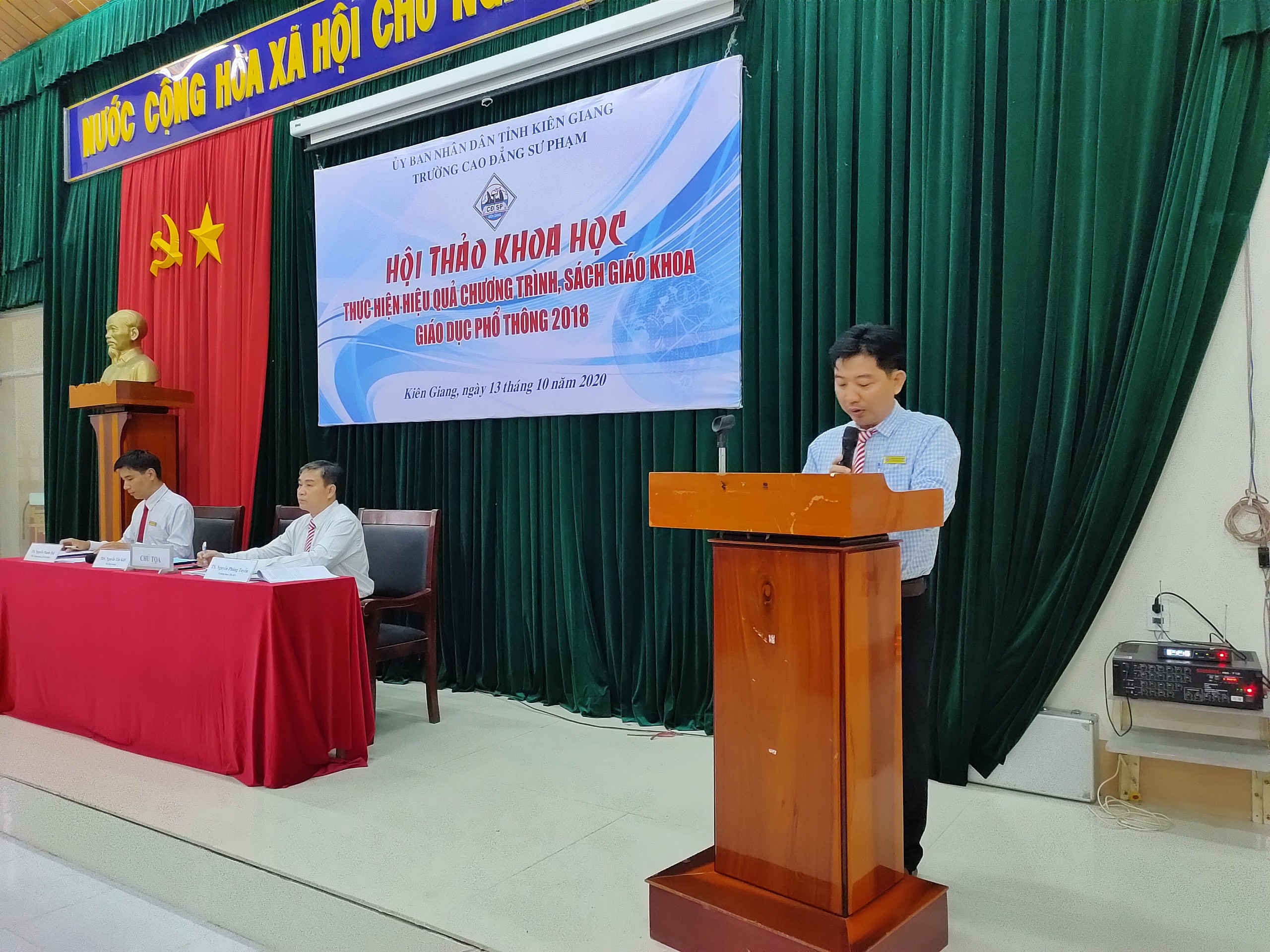 Nhằm thực hiện Đề án đổi mới chương trình, sách giáo khoa giáo dục phổ thông, lấy mục tiêu là chuyển biến căn bản, toàn diện về chất lượng và hiệu quả giáo dục phổ thông; chuyển nền giáo dục nặng về truyền thụ kiến thức sang nền giáo dục phát triển toàn diện cả về phẩm chất và năng lực, hài hoà đức, trí, thể, mĩ và phát huy tốt nhất tiềm năng của mỗi học sinh, BGH trường CĐSP Kiên Giang đã tổ chức chương trình Hội thảo khoa học với chủ đề: “Thực hiện hiệu quả chương trình, sách giáo khoa giáo dục phổ thông 2018” vào 13h30 ngày 13/10/2020 tại Giảng đường của nhà trường.