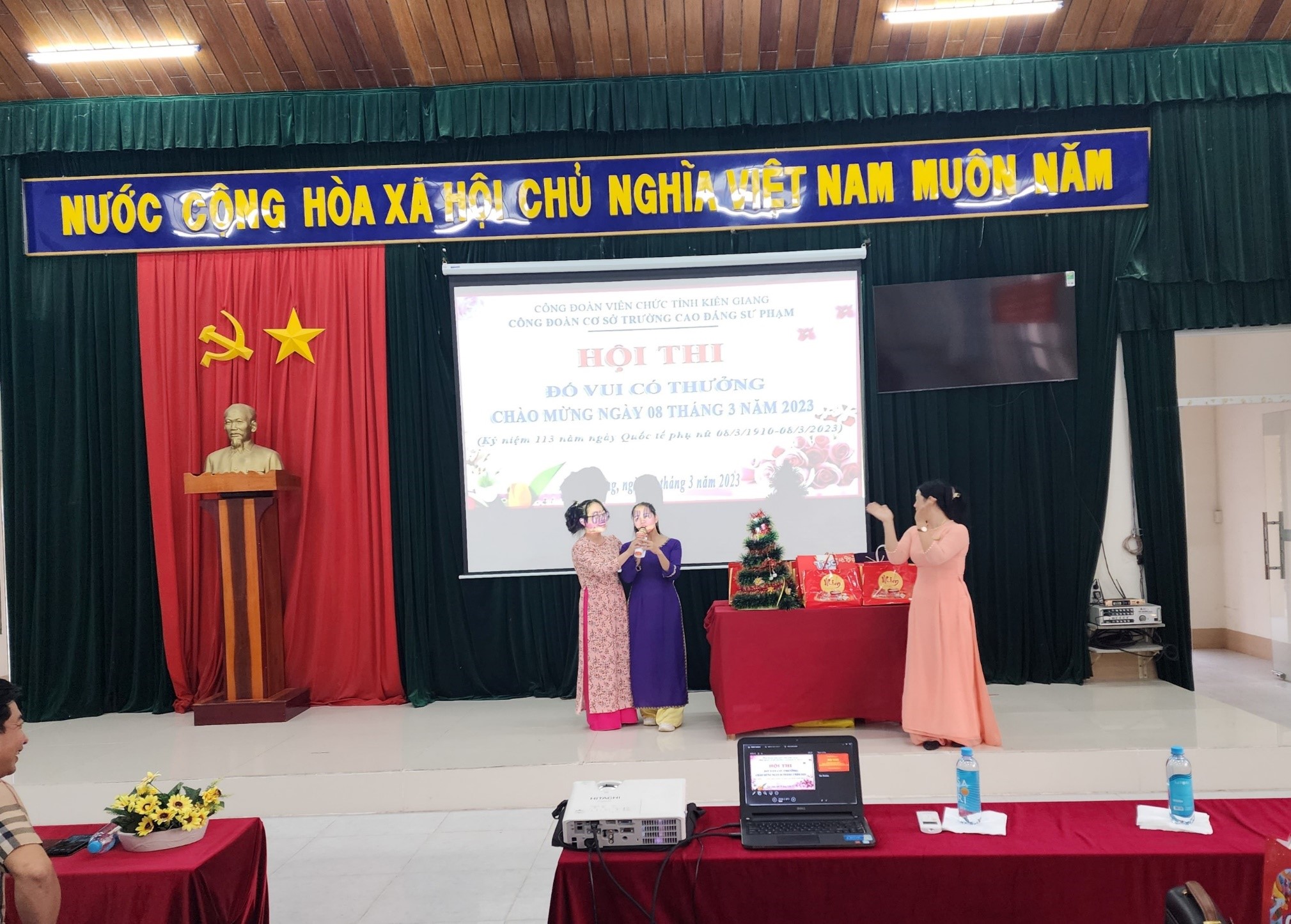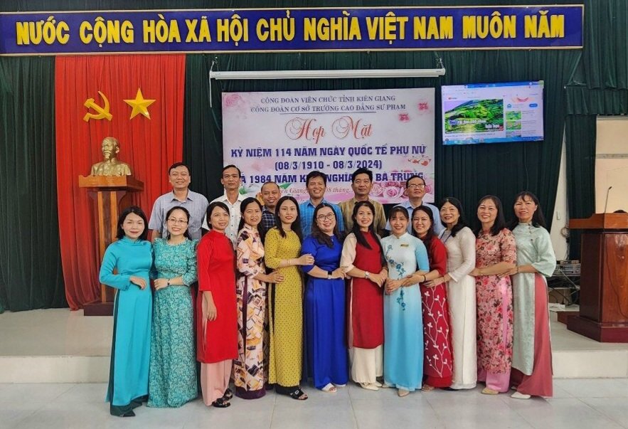 Nhân dịp Kỉ niệm 113 năm Ngày Quốc tế Phụ nữ (08/3/1910-08/3/2023), chiều ngày 08.3, Ban Nữ công trường Cao đẳng Sư phạm Kiên Giang đã tổ chức hội thi “Đố vui có thưởng” và họp mặt nữ công đoàn viên của nhà trường.