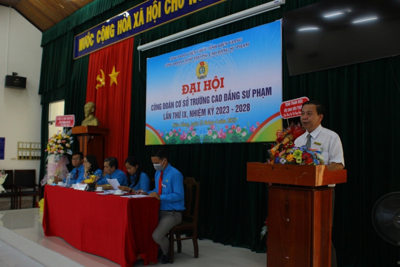 Ngày 22/4/2023, Công đoàn cơ sở Trường Cao đẳng Sư phạm Kiên Giang tổ chức Đại hội lần thứ IX, nhiệm kỳ 2023-2028. Dự và chỉ đạo Đại hội có đồng chí Nguyễn Văn Năng, Chủ tịch Công đoàn Viên chức tỉnh Kiên Giang; đồng chí Cao Thanh Hùng, Bí thư Đảng ủy, Hiệu trưởng trường CĐSP Kiên Giang và toàn thể đoàn viên công đoàn.
