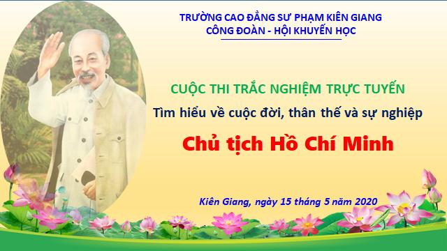 Nhân kỷ niệm 130 năm ngày sinh Chủ tịch Hồ Chí Minh (19/5/1890 – 19/5/2020); 109 năm ngày Bác Hồ ra đi tìm đường cứu nước (05/6/1911 – 05/6/2020) và 72 năm ngày Chủ tịch hồ Chí Minh ra lời kêu gọi thi đua ái quốc (11/6/1948 – 11/6/2020). Được sự chỉ đạo của Đảng ủy trường CĐSP Kiên Giang, Công đoàn cơ sở phối với Hội Khuyến học tổ chức, triển khai Cuộc thi trắc nghiệm trực tuyến tìm hiểu về cuộc đời, thân thế và sự nghiệp của Bác.