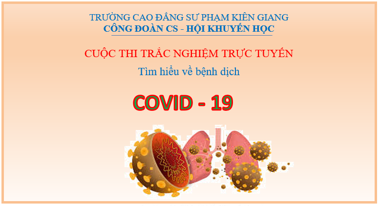 Được sự chỉ đạo của Đảng ủy trường CĐSP Kiên Giang, Công đoàn cơ sở phối với Hội Khuyến tổ chức, triển khai Cuộc thi trắc nghiệm trực tuyến tìm hiểu các kiến thức cơ bản về dịch bệnh viêm đường hô hấp cấp do chủng mới của virus Corona (Covid-19) gây ra, như: Đường lây truyền, các biểu hiện của dịch bệnh, cách nhận biết người có khả năng bị lây nhiễm dịch bệnh trong cộng đồng, những giải pháp phòng, chống dịch bệnh đã triển khai trong thời gian qua…