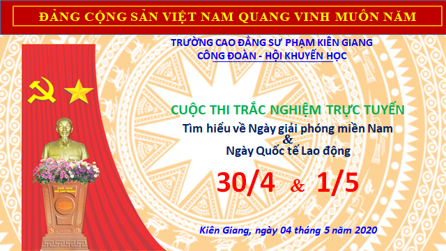 Được sự chỉ đạo của Đảng ủy Trường CĐSP Kiên Giang, Công đoàn cơ sở phối hợp với Hội Khuyến học tổ chức, triển khai Cuộc thi trắc nghiệm trực tuyến tìm hiểu về Ngày giải phóng miền Nam, thống nhất đất nước 30/4 và Ngày Quốc tế Lao động 1/5.