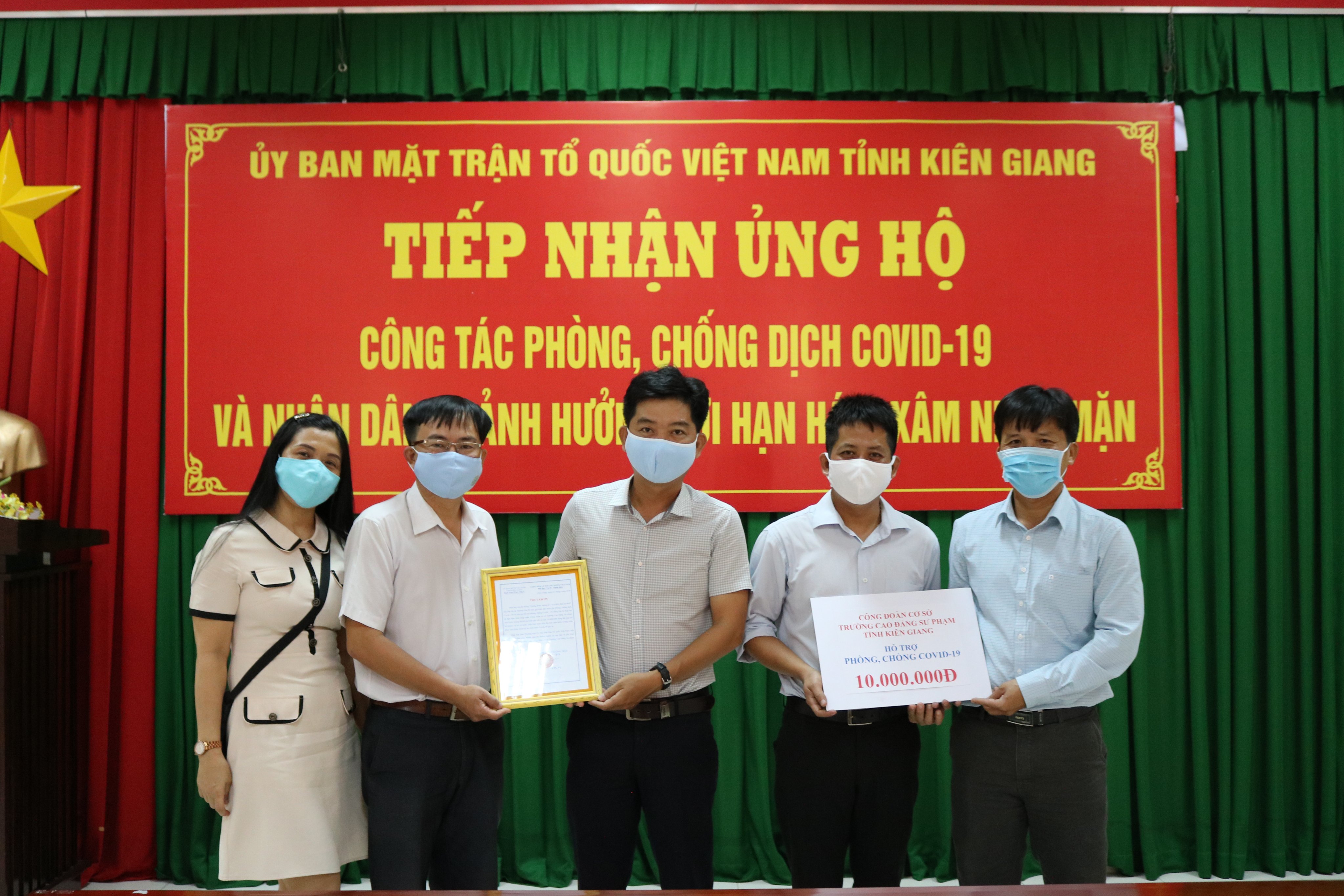 Hưởng ứng lời kêu gọi “Toàn dân tham gia ủng hộ phòng, chống dịch Covid-19” của Đoàn Chủ tịch Ủy ban Trung ương Mặt trận Tổ quốc Việt Nam, nhằm tiếp tục cùng toàn Đảng, toàn quân và toàn dân tập trung phòng, chống dịch Covid-19 và có thêm nguồn lực, tăng cường các biện pháp phòng, chữa bệnh, bảo đảm an sinh xã hội, an toàn đời sống và sức khỏe của nhân dân, BGH trường CĐSP Kiên Giang đã chỉ đạo các đơn vị phòng, ban, đoàn thể trong nhà trường huy động các nguồn lực ủng hộ người dân vượt qua khó khăn do dịch Covid 19.