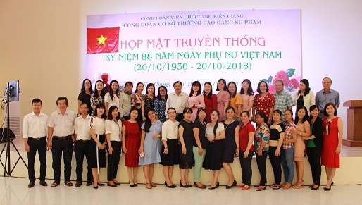 Nhằm tôn vinh vai trò của người phụ nữ Việt Nam xưa và nay và xây dựng không khí khích lệ tinh thần làm việc của các nữ cán bộ, viên chức trong nhà trường. Chiều ngày 19/10/2018, tại Giảng đường trường CĐSP Kiên Giang, công Đoàn nhà trường đã tổ chức buổi lễ kỉ niệm chào mừng 88 năm ngày Phụ nữ Việt Nam (20/10/1930 – 20/10/2018).