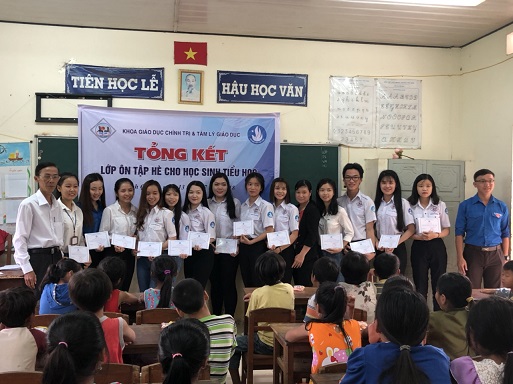 Thực hiện Kế hoạch số 16/KH-ĐTN ngày 28 tháng 5 năm 2018 của Đoàn trường CĐSP Kiên Giang và căn cứ vào chương trình làm việc của HSV năm học 2017-2018, sáng ngày 13/7/2018, BCH HSV trường phối hợp cùng chi bộ Khoa GDCT-TLGD trường CĐSP Kiên Giang đã tổ chức buổi lễ tổng kết công tác Ôn tập hè tại trường Tiểu học Nguyễn Huệ, thành phố Rạch Giá