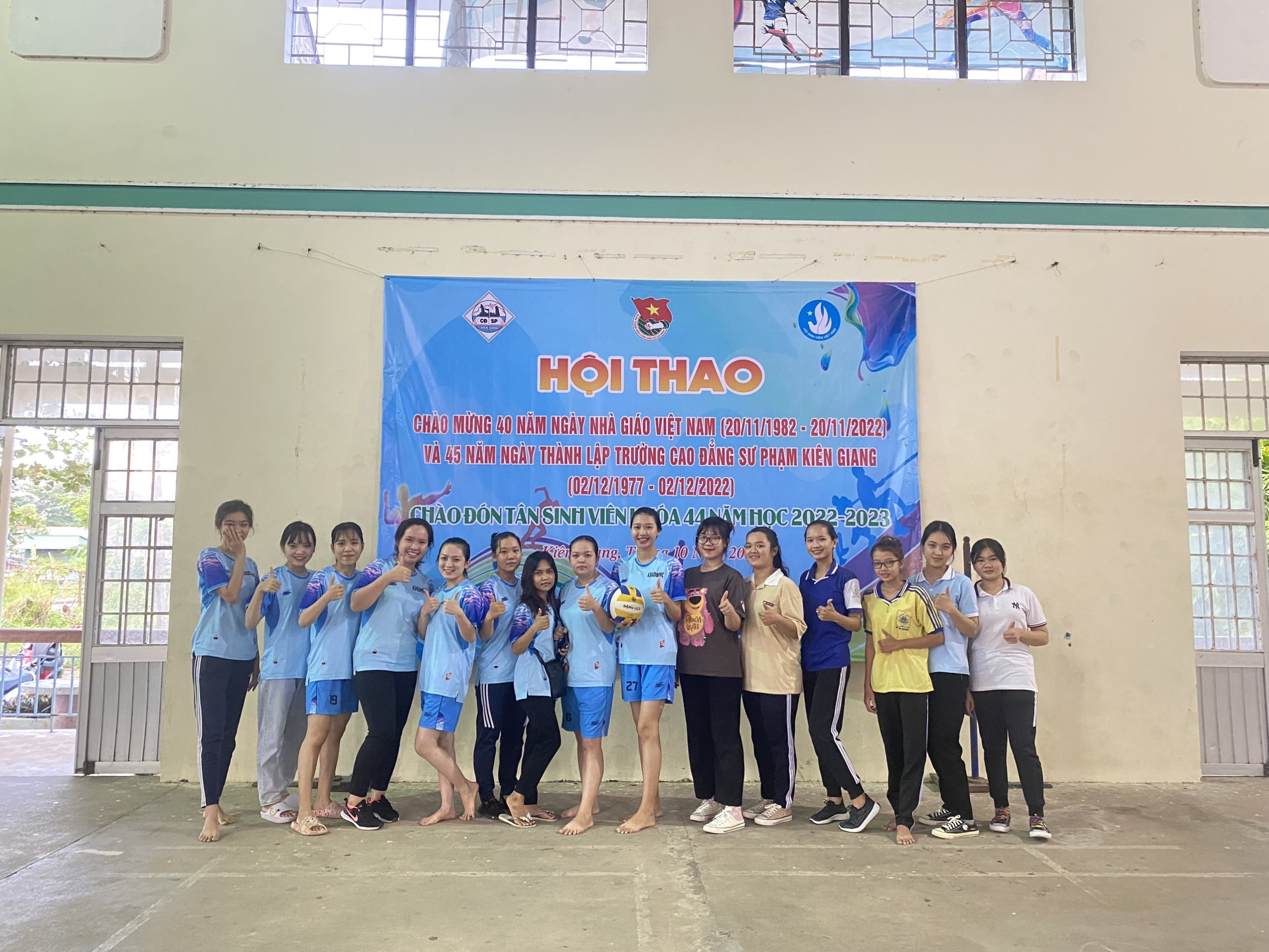 Hưởng ứng các hoạt động chào mừng 40 năm Ngày Nhà giáo Việt Nam (20/11/1982-20/11/2022) và 45 năm Ngày thành lập trường (02/12/1977-02/12/2022). Trường Cao đẳng Sư phạm Kiên Giang tổ chức Hội thao cho toàn thể viên chức, người lao động và sinh viên của nhà trường với nhiều sân chơi hấp dẫn.