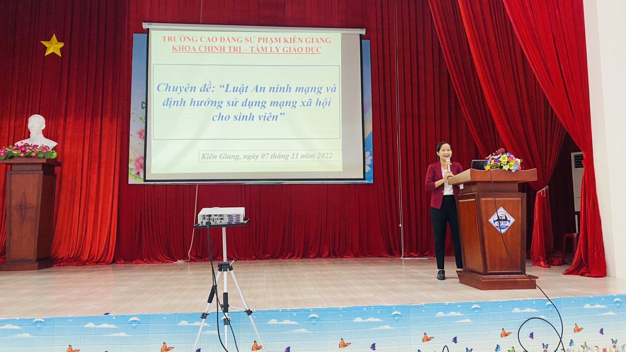 Hưởng ứng ngày Pháp luật Việt Nam 09/11/2022 và nâng cao ý thức chấp hành pháp luật trong sinh viên. Ngày 07/11/2022, tại Hội trường, Khoa Chính trị - Tâm lý giáo dục tổ chức sinh hoạt chuyên đề “Luật An ninh mạng và định hướng sử dụng mạng xã hội cho sinh viên” nhằm nâng cao nhận thức của sinh viên về Luật An ninh mạng với vấn đề an ninh không gian mạng quốc gia, an ninh an toàn học đường và sử dụng mạng xã hội một cách hữu ích, tránh xa tệ nạn xã hội, phòng ngừa tội phạm.