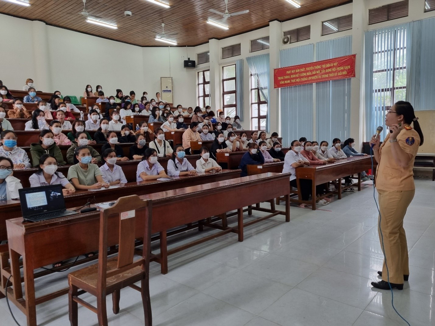 Tại buổi báo cáo, Thiếu tá Phạm Thị Thanh Hương – Phòng Cảnh sát giao thông đường bộ tỉnh Kiên Giang - báo cáo viên, đã trao đổi với các em về các quy định mới liên quan đến an toàn giao thông, tình hình trật tự an toàn giao thông trên địa bàn tỉnh. Cũng thông qua buổi báo cáo này, giúp lan tỏa văn hóa giao thông học đường, nâng cao ý thức chấp hành pháp luật giao thông để hạn chế vi phạm, tai nạn giao thông trong sinh viên, đồng thời thực hiện mục tiêu nâng cao hiệu quả công tác giáo dục ATGT trong học sinh sinh viên năm học 2022 - 2023.