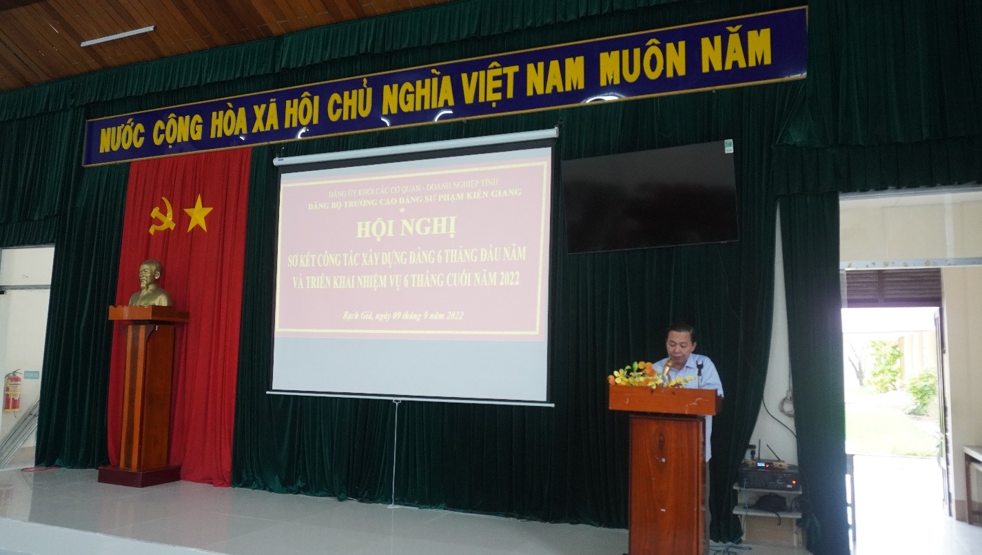 Chiều ngày 09/9, tại Giảng đường, Đảng bộ trường Cao đẳng Sư phạm Kiên Giang đã tổ chức Hội nghị sơ kết công tác xây dựng đảng 6 tháng đầu năm và triển khai nhiệm vụ 6 tháng cuối năm 2022, đồng thời triển khai một số Quy định, Nghị quyết về công tác xây dựng tổ chức đảng.