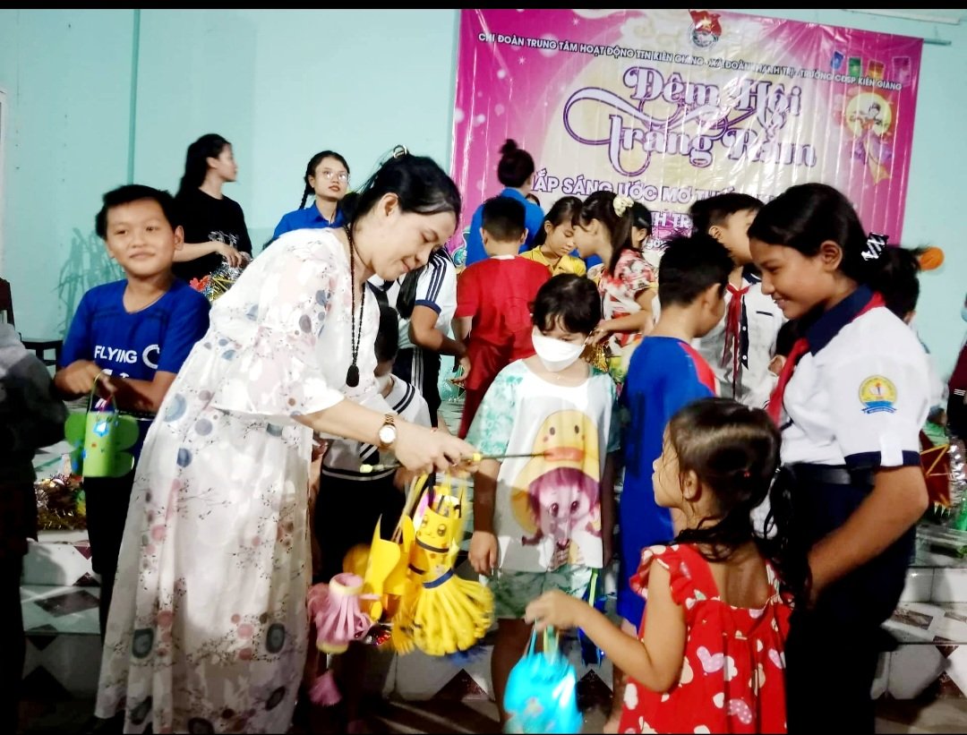 Tại chương trình, các bạn đoàn viên, sinh viên của Khoa GDMN đã tổ chức chương trình kể chuyện, các tiết mục văn nghệ cho các em thiếu nhi tại xã Thạnh Trị, huyện Tân Hiệp. Các tiết mục này đã mang lại không khí vui tươi, thoải mái cho các em thiếu nhi tham dự. Trong không khí tưng bừng của chương trình Trung thu, Ban chỉ đạo mô hình dân vận khéo của Chi bộ Khoa GDMN đã trao 50 lồng đèn cho các em thiếu nhi tại xã. Các phần quà này là kết quả của quá trình dân vận tài lực, vật lực từ mô hình của chi bộ đồng thời góp phần quảng bá hình ảnh tốt đẹp của tập thể Đảng viên, giảng viên Khoa GDMN và trường CĐSP Kiên Giang.