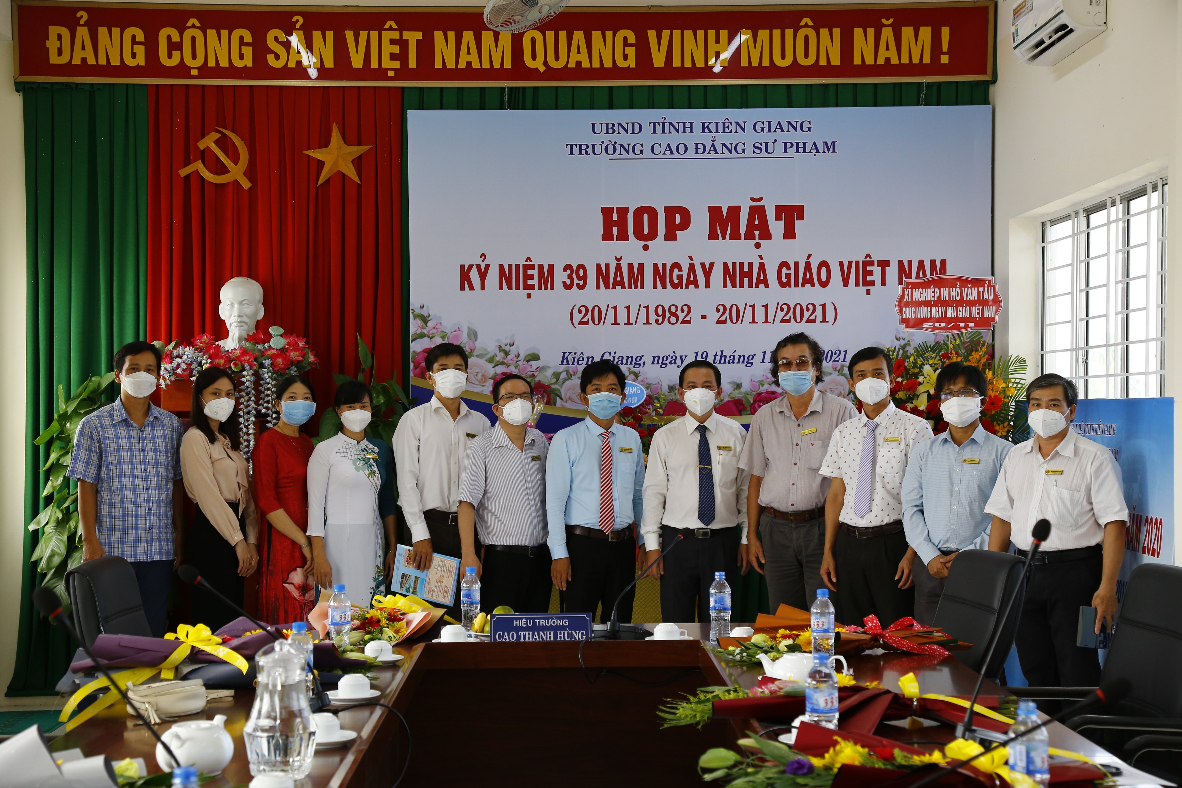Nhằm tri ân những đóng góp của các thế hệ thầy cô và thực hiện chỉ đạo của Đảng uỷ - BGH nhà trường, chiều ngày 19/11/2021 trường CĐSP Kiên Giang đã tổ chức chương trình họp mặt chào mừng Lễ Kỉ niệm 39 năm Ngày Hiến chương Nhà giáo Việt Nam (20/11/1982 – 20/11/2021) tại phòng họp trực tuyến.