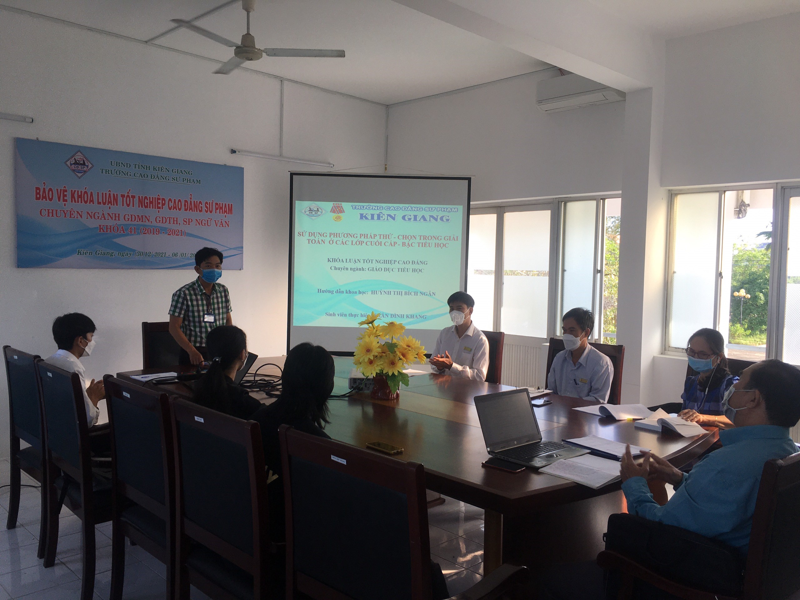 Thực hiện Kế hoạch năm học 2001 - 2022; Căn cứ Kế hoạch số 206/KH-CĐSP ngày 21 tháng 12 năm 2021 của Hiệu trưởng Trường Cao đẳng Sư phạm Kiên Giang về việc tổ chức chấm khóa luận tốt nghiệp cho sinh viên Khóa 41 Trường Cao đẳng Sư phạm Kiên Giang. Phòng Quản lý khoa học và Đảm bảo chất lượng phối hợp với Khoa Giáo dục Mầm non, Khoa Tự nhiên – Xã hội tiến hành tổ chức chấm khóa luận tốt nghiệp cho sinh viên chuyên ngành Giáo dục Mầm non, Giáo dục Tiểu học và Sư phạm Ngữ văn. Theo đó, quá trình viết và chấm khóa luận được thực hiện theo đúng Quy định 69/QyĐ-CĐSP-ĐT, ngày 15 tháng 10 năm 2018 của Hiệu trưởng nhà trường.