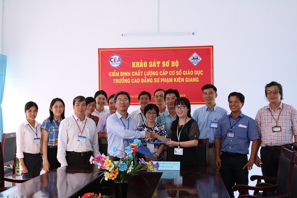 Theo kế hoạch đánh giá ngoài của nhà trường, sáng ngày 5 tháng 3 năm 2019, Ban Giám hiệu trường CĐSP Kiên Giang đã đón Đoàn đánh giá ngoài của Trung tâm kiểm định chất lượng giáo dục – Đại học Quốc gia Thành phố Hồ Chí Minh tại Nhà hiệu bộ của nhà trường.