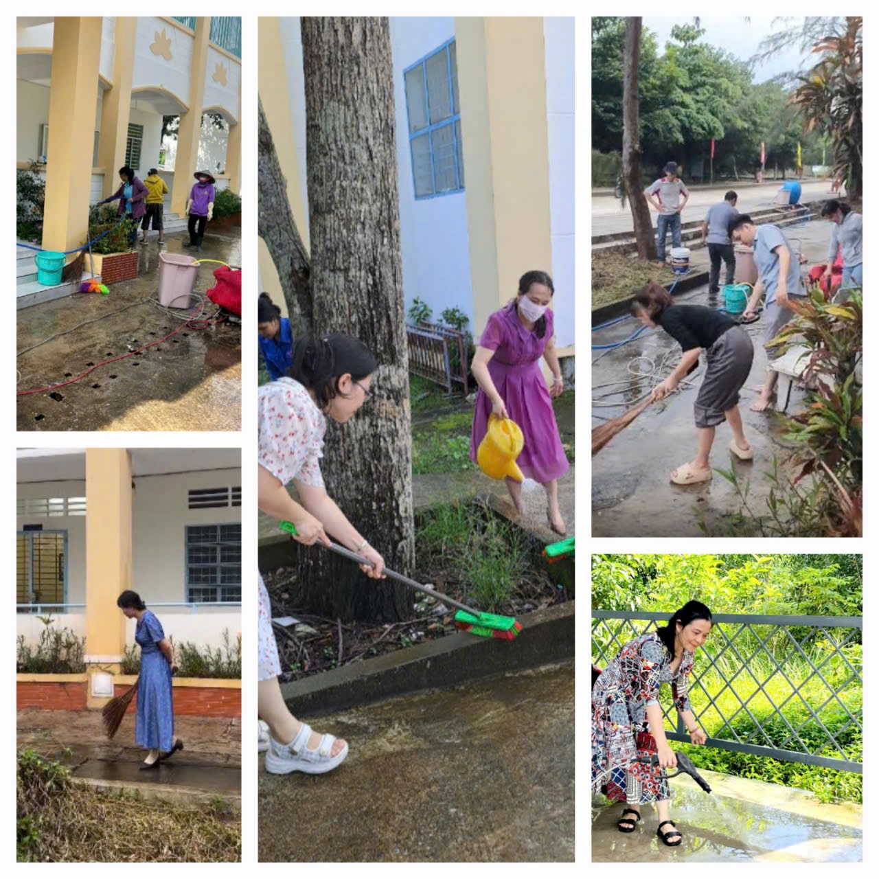 Để tạo sự an toàn cho giảng viên, sinh viên, nhân viên khi di chuyển trong các khu vực: Nhà để xe giảng viên (trước dãy Nhà học E); Sân Nhà học E và Sân dãy Nhà Thực hành (mới) vào những ngày mưa bão, không bị trơn trợt, tập thể giảng viên khoa GDMN đã lau chùi, làm vệ sinh nhằm tạo cảnh quan “xanh – sạch – đẹp”. Các thầy, cô đã làm việc với tinh thần hăng say, trách nhiệm; và thành quả là khuôn sạch sẽ, thoáng mát tạo nên tâm thế phấn khởi cho cán bộ, giảng viên và sinh viên.