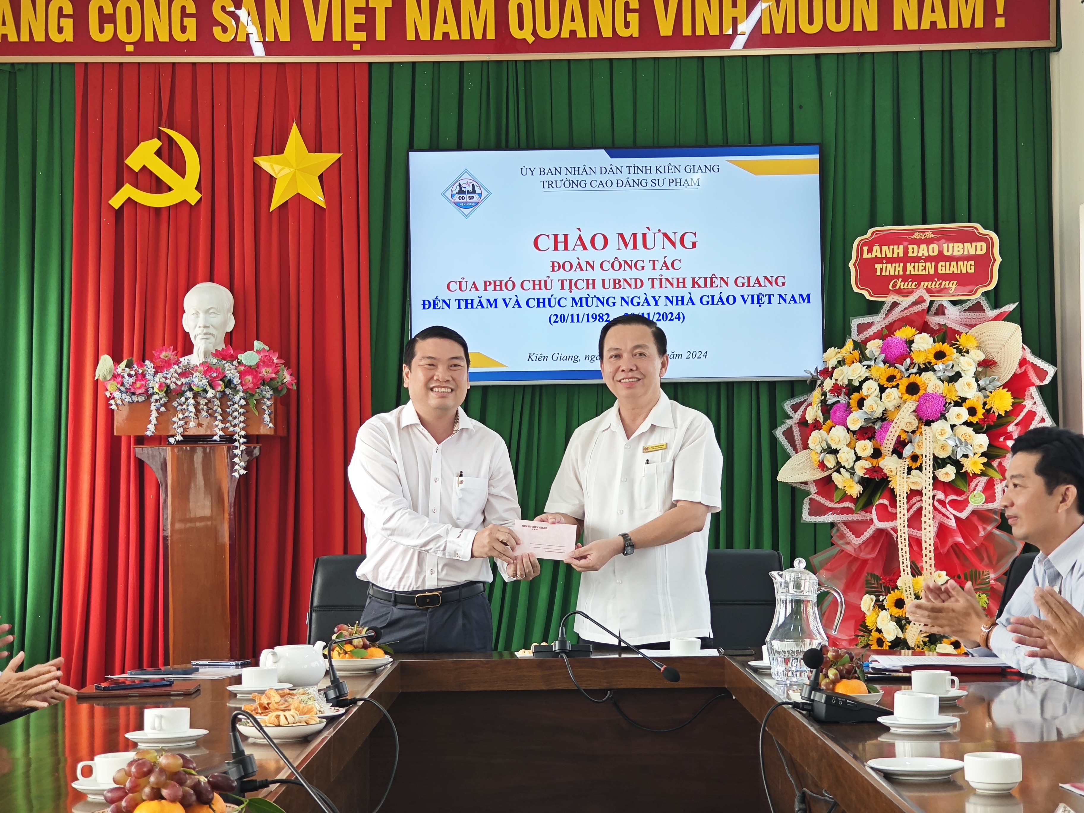Chiều ngày 18/11/2024, tại phòng họp của trường, Đảng uỷ, Ban Giám hiệu trường đã đón tiếp đoàn công tác của Phó Chủ tịch UBND tỉnh Kiên Giang đến thăm và chúc mừng tập thể BGH, cán bộ, viên chức của nhà trường.