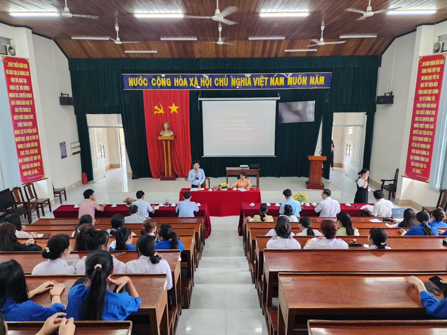 Thực hiện Kế hoạch năm học 2023-2024, chiều ngày 14/11/2023, tại Giảng đường, đã diễn ra Hội nghị Ban cán sự, Bí thư các lớp Học kì I, năm học 2023-2024. Tham dự Hội nghị có thầy Nguyễn Tấn Kiệt – Phó Bí thư Đảng ủy, Phó Hiệu trưởng nhà trường, các thầy cô lãnh đạo các phòng, khoa, đoàn thể cùng đại diện tập thể các lớp sinh viên thuộc các khóa 43, 44, 45.